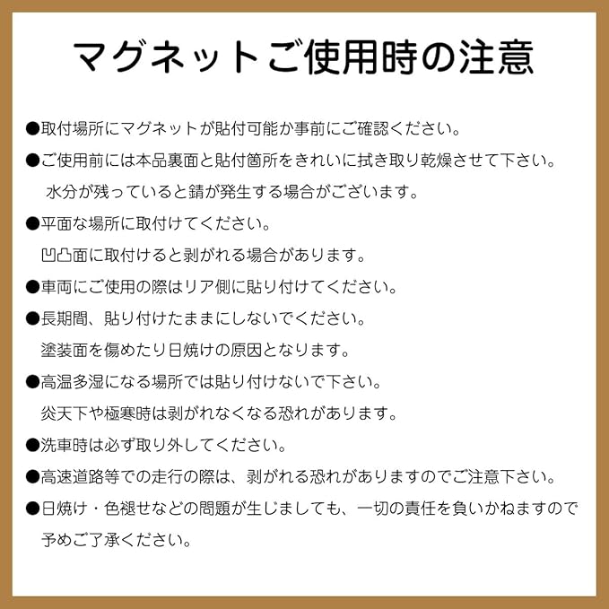 マグネットタイプのサインプレートです。車両の場合は後部に貼り付けてご使用ください。