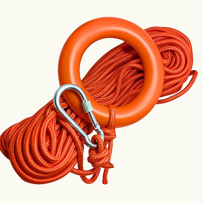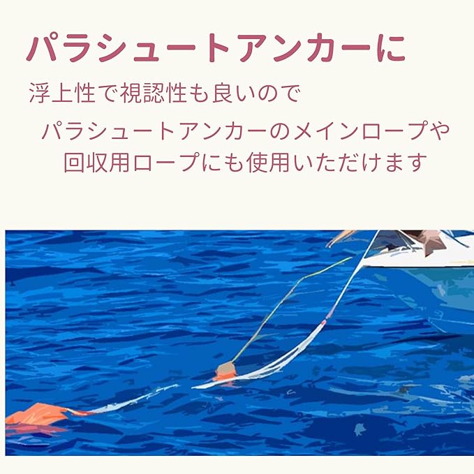 【注意点】 :フローティングロープは身体確保には適していません。あくまでもウォータースポーツ時の人命救助用途のロープですので、バスボートなどプレジャー・ボートのけん引、クライミングや重量物の吊り下げなどの用途には使用できません。登攀やビレイ、懸垂下降などの身体確保には使用しないでください。使用後は真水ですすぎ、砂や汚れを洗い流し、風通しの良い場所で陰干ししてください 劣化や破損が見られる場合は廃棄してください