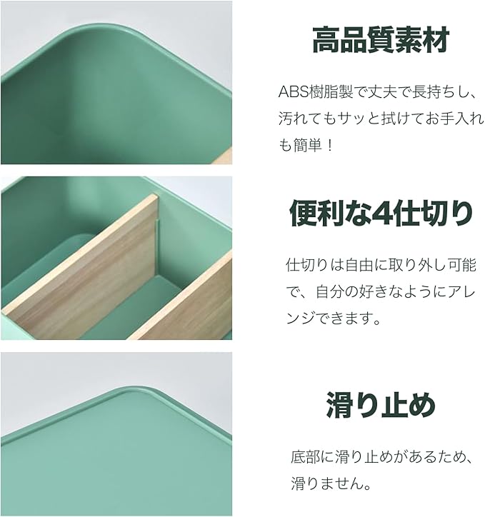 【便利な4仕切り】収納ケースは4仕切りに分けることができ、綺麗に分別できます。仕切りは自由に取り外し可能で、自分の好きなようにアレンジできます。