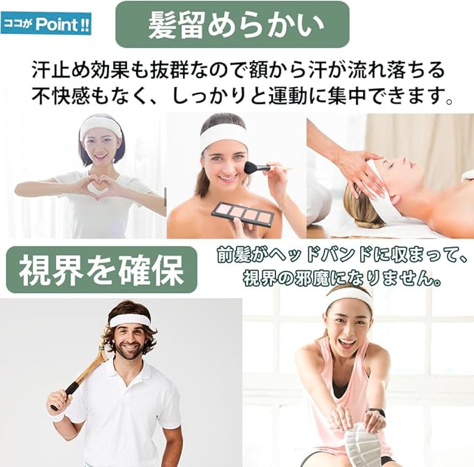 【吸汗速乾性と抗菌防臭処理】このヘアバンドはコットン素材を採用ため、普通のヘッドバンドより吸汗排湿力が優れ、運動する時に気になる額の汗を素早く吸収する、頭にすっきりを保つ!汗止め効果も抜群なので額から汗が流れ落ちる不快感もなく、しっかりと運動に集中できます。吸汗、抗菌、防臭で、長時間のトレニンーグでも汗や臭いなどによる心配することはありません。完全に運動に集中させます。