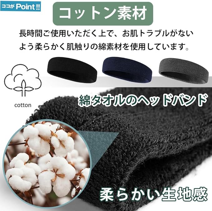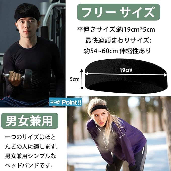 【ヘアバンド仕様】素材は80%コットン、8%ナイロン、12%ポリエステルのヘッドバンド3枚セット。サイズ: フリーサイズ 伸縮性、通気性の素材、1つのサイズは、男女兼用:平置きサイズ:約19cm*5cm 最快適頭まわりサイズ:約54~60cm 伸縮性あり