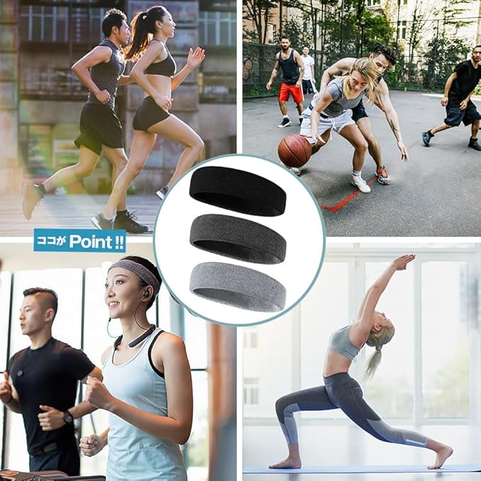 ヘアバンド ヘッドバンド メンズ レディース【肌触りが柔らかい】【適度な厚み】ヘアターバン バンダナ 汗止め タオル生地 伸縮性あり 抗菌防臭 スポーツ 洗顔用 髪留めらかい ランニング ダンス ヨガ ジョギング サッカー サイクリング 男女兼用 3枚入り | oioioichan