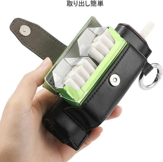 GUANSTD 加熱式たばこ用ケース イルマ i ワン/イルマワンに適用する まとめて収納ケース レザーケース 全面保護 耐衝撃 おしゃれ 持ち運び便利 カラビナ付き(ブラック) | oioioichan