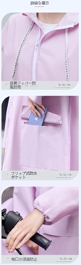 4. 防風&軽量:強風から身を守るために、このレインコートは防風性も備えています。さらに、軽量な素材で快適に移動できます。