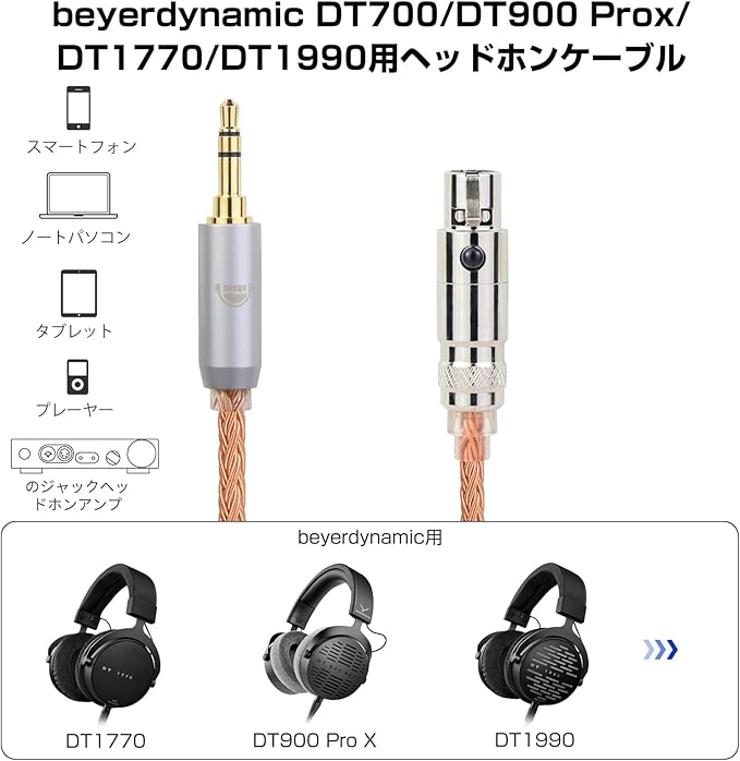 【様々な機器に対応】ヘッドホンリケーブルのプラグは5種類(3.5mm、2.5mm、4.4mm、6.35mm、4Pin XLR)があり。使用機器に合わせお選びいただけます。