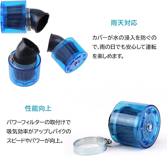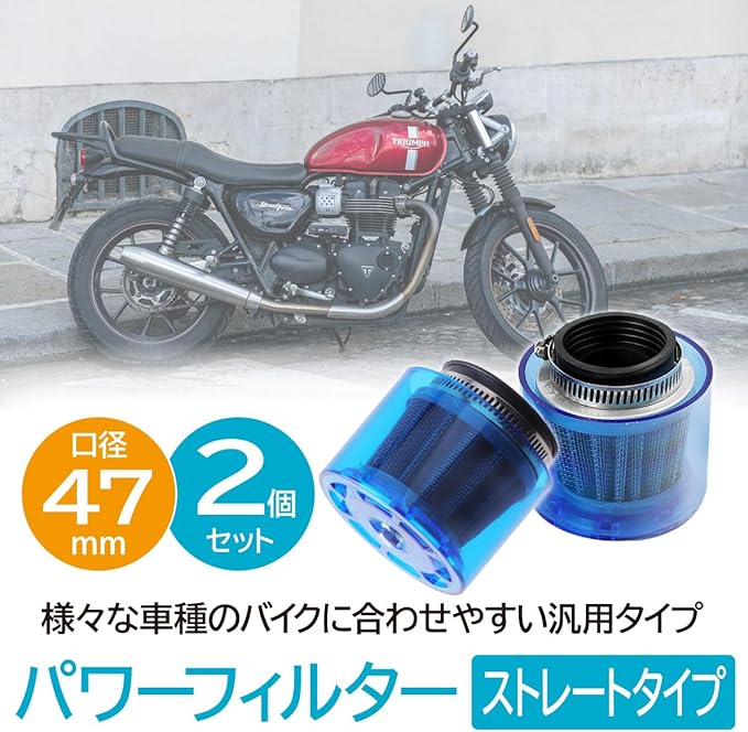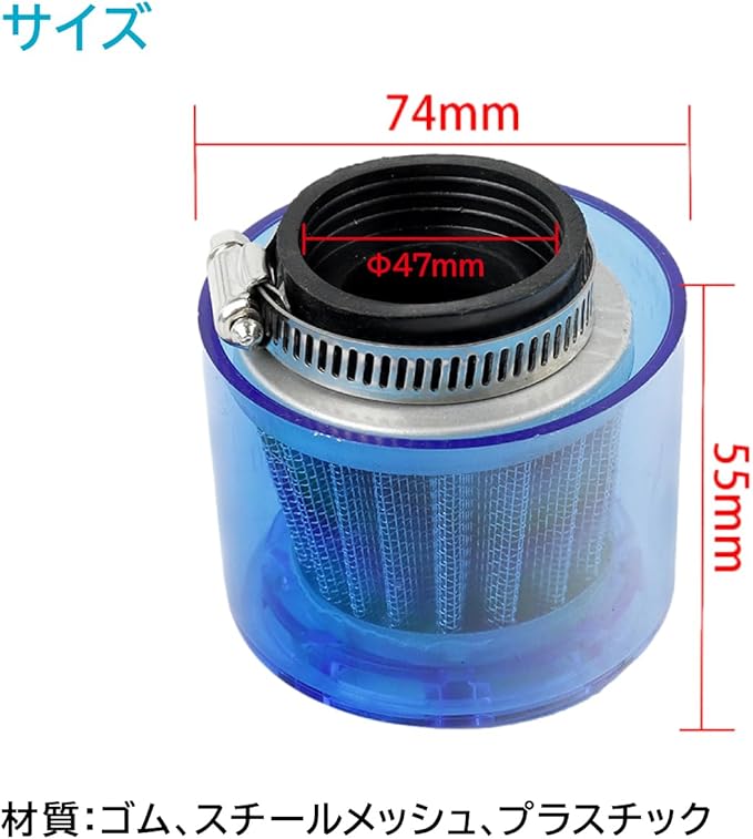 【仕様】サイズ:W74mm H55mm / 重量:約130g 重量は口径により異なります。 / 材質:ゴム、スチールメッシュ、プラスチック / カラー:ブルー / 入数:2個 / タイプ:ストレート / 取り付け口:47mm ※モニターの環境により、色の見え方に若干差が生じる場合がございます。