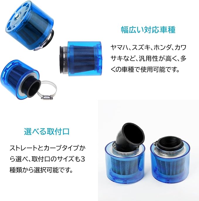 ストレートタイプとカーブタイプから選べ、取付口のサイズもφ35mm・φ42mm・φ47mmの3種類から選択可能です。