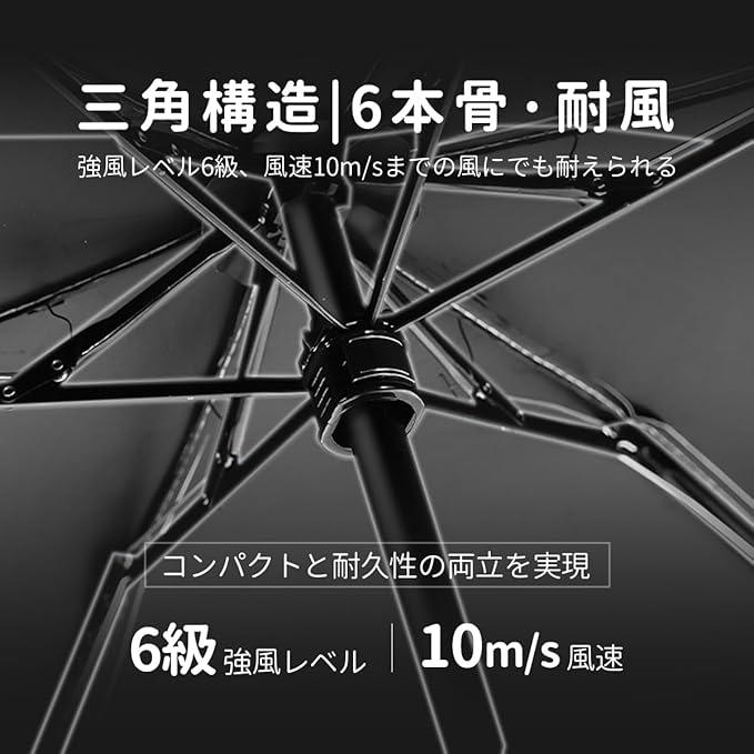 頑丈な6本骨&耐風撥水: センターポールと6本の傘骨は頑丈なアルミニウム合金製で、超軽量の折畳み傘でありながら、耐久性も向上され、風に強くて折れにくい。梅雨対策や、荒れた天気にも難なく対応できる晴雨兼用の折りたたみ傘です。