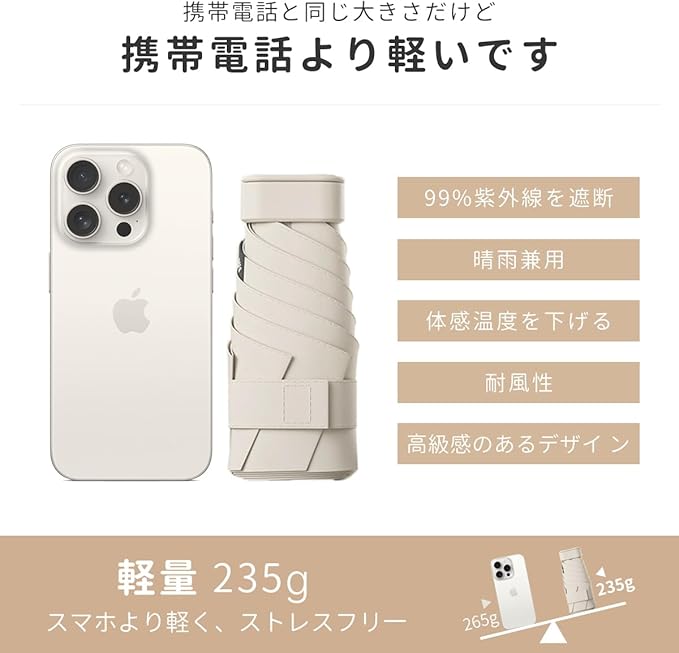 Rasime UVカット99.9% 折り畳み晴雨兼用傘 超軽量235g 完全遮光 レディース/メンズ兼用 コンパクト収納(傘付きバッグ対応) スーパーミニサイズ 通勤/旅行用 | oioioichan