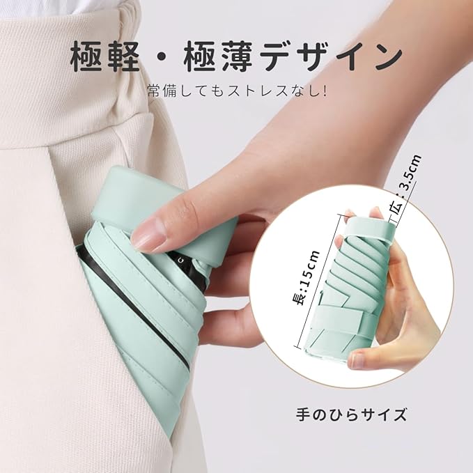 超軽量&携帯便利: この男女兼用折りたたみ日傘はコンパクトのデザインで、折りたたみ時のサイズは15 3.5cm、重量は約235g、とても小さくて軽いです。バッグに簡単に入れることができ、通学、通勤、遠足、旅行,出張など幅広くご利用できます。
