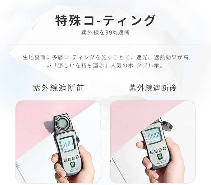 晴雨兼用: この折りたたみ傘は高密度防水素材を採用し、超撥水テフロン加工が施され、通常の折りたたみ日傘よりも優れた防水機能、軽く振るだけで雨が玉のように一気に落ちるので、他の人の邪魔になることもありません。雨の日も、晴れの日も兼用でご利用頂けます。