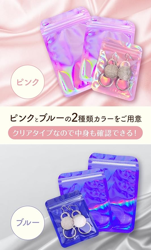 オーロラ チャック袋 小分け 収納 便利 コンパクト ジュエリー アクセサリー 整理 100枚 セット ブルー ピンク クリア タイプ 丈夫 HAKSE LAB (ピンク, 8.5cm 13cm) | oioioichan