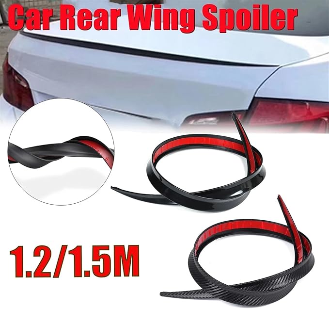 ユニバーサル 1.2m 1.5m ユニバーサル カー リア ルーフ リップ スポイラー テール トランク ウィング ステッカー PU グロス ブラック カーボンファイバー DIY リフィット トリム 装飾 ゴム