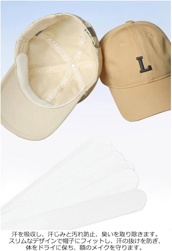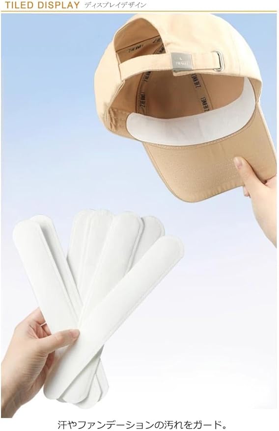 汗を吸収し、汗じみと汚れ防止、臭いを取り除きます。スリムなデザインで帽子にフィットし、汗の抜けを防ぎ、体をドライに保ち、額のメイクを守ります。