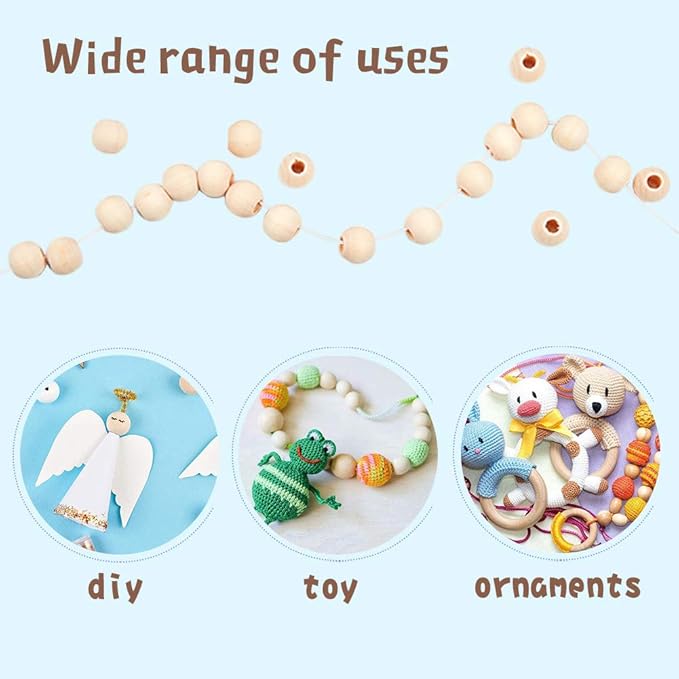【幅広い用途】農家の花輪、ネックレス、ブレスレット、ロザリオ、クッション、カーテンビーズ、装飾ライト、ドリームキャッチャー、DIYクラフトや他のビーズプロジェクトを作るために、お好みで装飾を施し、自分だけのオリジナル木製ビーズをDIYしたり、この木製ルースビーズを使って、ランプや鉢植えなど家の装飾やパーティーの飾り付けをしたりすることができます。