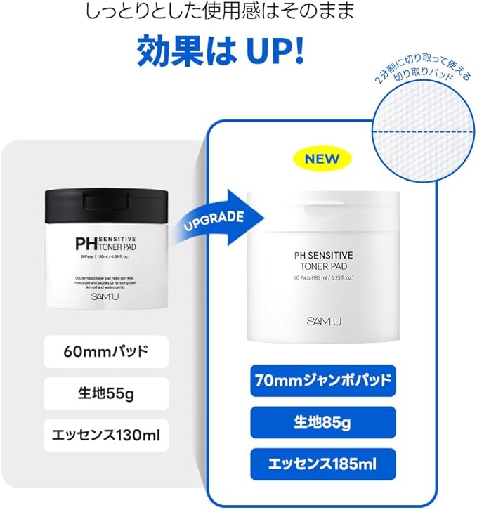 サミュPHセンシティブトナーパッド 60枚入 SAM'U PH SENSITIVE TONER PAD 化粧水 抜き取りパッド シート 保湿 ヒアルロン酸 パンテノール スキンケア 韓国コスメ | oioioichan