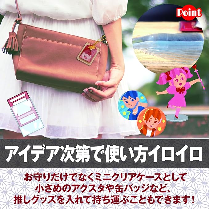 お守りだけでなく、小さめサイズのアクスタや缶など、推しグッズを入れて持ち運べそう!アイデア次第で汎用性もばっちり、お守り用カバー、ミニクリアケースです。