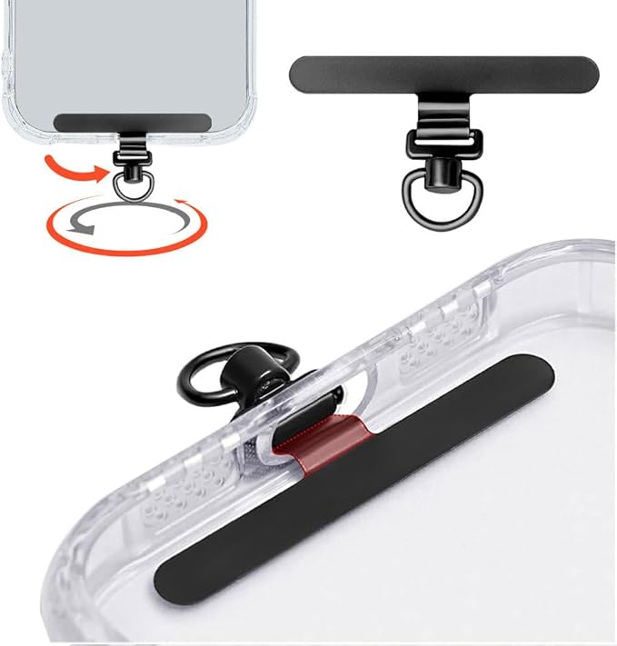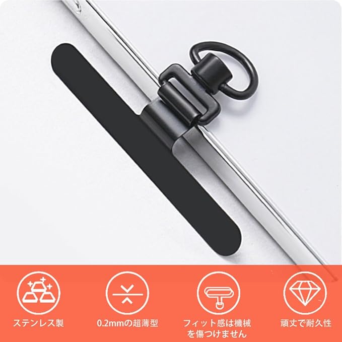 スマホ ストラップホルダー 埋め込み【YCJDPの2024極薄型】0.2mm・360 旋回式 金属ステンレス製 薄型 耐久性のある 滑らかで繊細 反りがない 丈夫13kgまでの荷重量 機械を傷めずに丸刃カットが可能 全機種対応 充電に影響しない 落下紛失防止 ブラック | oioioichan