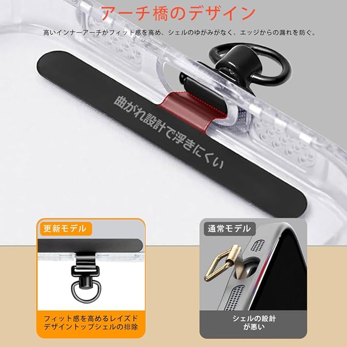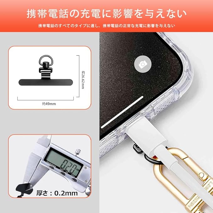 ✨【全機種対応 - 取り付け簡単】:機種を問わず、すべてのスマートフォンに対応し、スマートフォンとケースの間に挟み込み、充電ポートを通過させます。取り付けの際は、ブラケットの曲がる方向にご注意ください。 接続部分の「凹」側がケース側(下)、「凸」側がスマートフォン側(上)を向いています。 ショルダーストラップやリストストラップなど、さまざまなストラップと組み合わせて使用することで、日常生活(旅行、散歩、通勤、外出、自撮り、電車内など)でスマートフォンを落とす心配がなく、両手が自由に使えます。 (注:ショルダーストラップ/リストストラップは本パッケージには含まれておりません。)