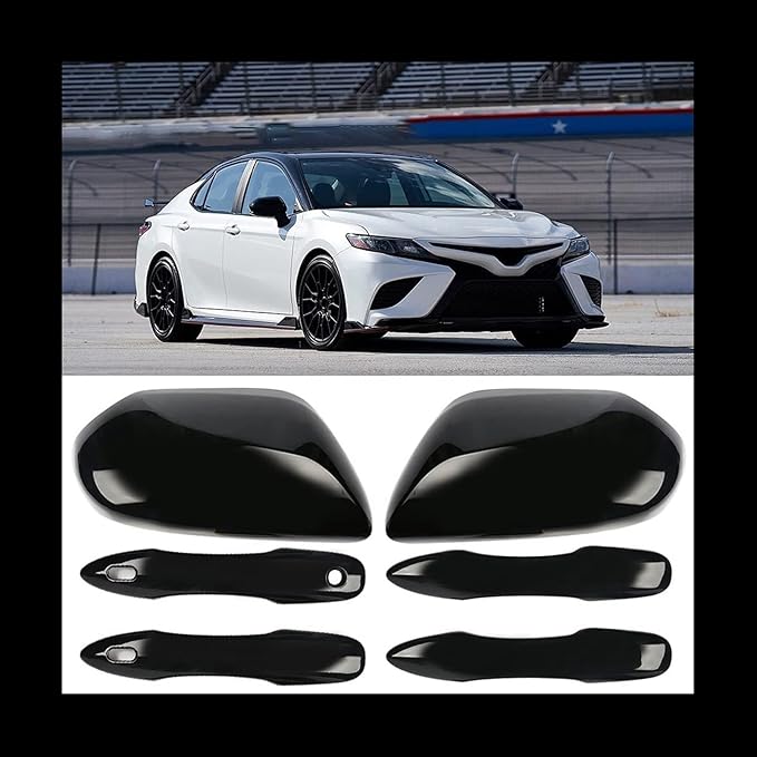 車のドアハンドルトリムカバー Compatible With Camry LE SE XLE XSE TRD V6 2018 2019 2020 2021 2022 2023 サイドドアミラーキャップとドアハンドルカバーを交換します。 | oioioichan