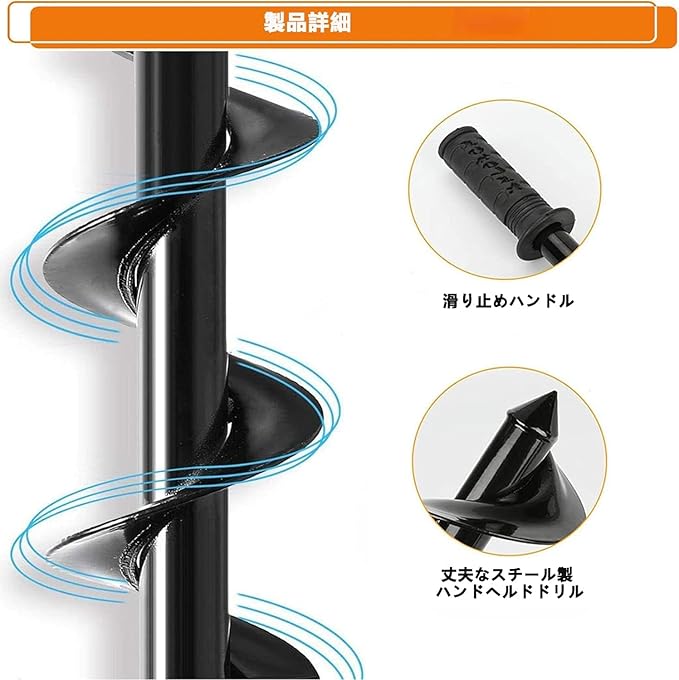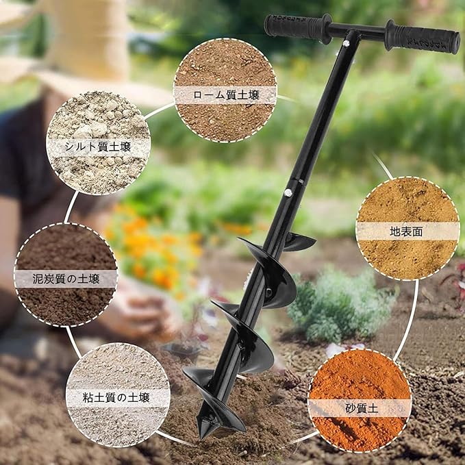アースドリル 手動 手動式アースドリル 園芸用 穴掘り 替えドリル 土掘り 穴掘りツール 植栽ツール ガーデニング用具 苗床の穴掘り 農業用 便利 野菜 花を植える ガーデン 穴掘り アースドリル (長さ60cm直径10cm) | oioioichan