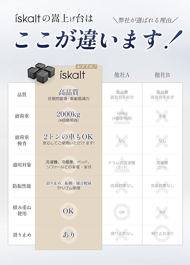 ISKALT 洗濯機用防振かさ上げ台 高さ調節 洗濯機・乾燥機・冷蔵庫用置き台 取り外し可能 家具に傷防止 滑り止め 床に傷防止 耐荷重約2000kg 異音吸収 振動吸収 テーブルの角を守る 自由につなぎ合わせる 1セット4個入り 据付脚IST001 1-BR | oioioichan