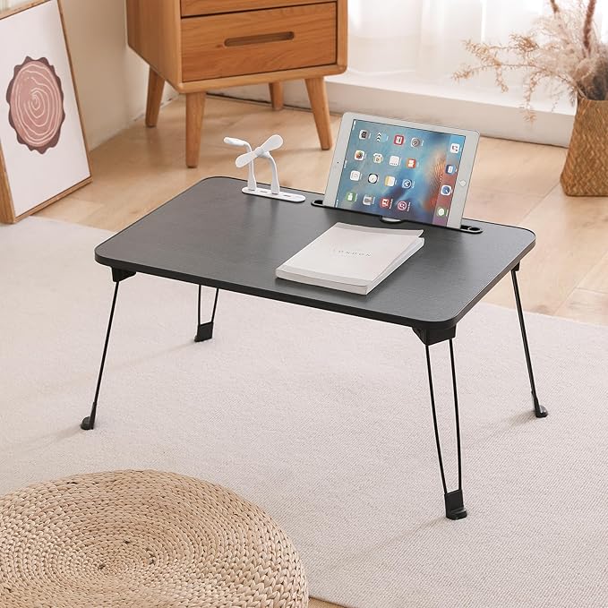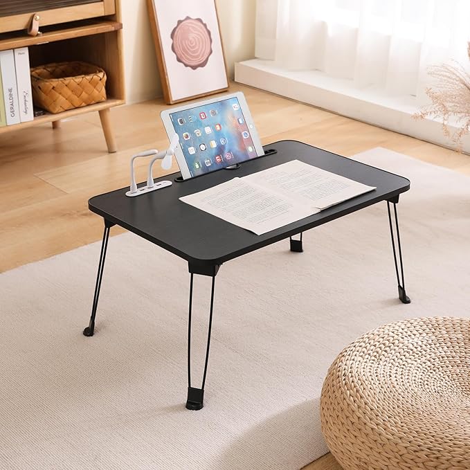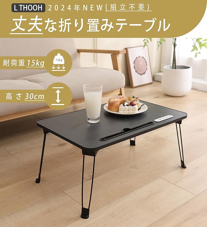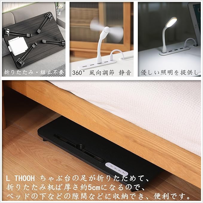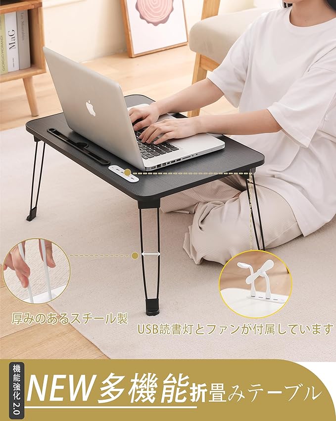 【2025年NEW多機能 折畳みテーブル 】(USB読書灯とファンが付属しています)ミニテーブル折りたたみ ローテーブル 折畳み 大容量表面 座卓 コーヒーテーブル 折畳み 机 ちゃぶ台 折畳み PCスタンド PCデスク完成品 軽量 学習 ベッド ソファ 食事 利用可 (ブラック, 長60*幅40cm) | oioioichan