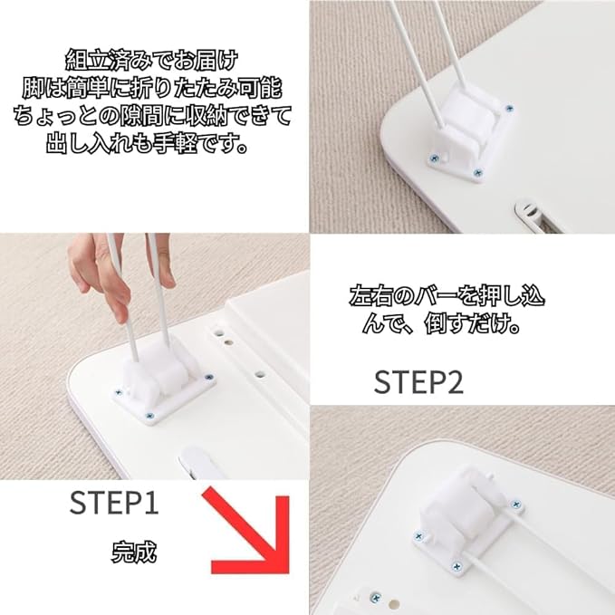 【頑丈安定&安全設計のローテーブル】高剛性スチール脚と底部滑り止めパッドで、ぐらつきなく安定したローテーブル を実現。フローリングや畳はもちろん、カーペットの上でもしっかり固定。すべての角が丸み加工で、お子様がいるご家庭でも安心。汚れ・熱に強い天板は、タオルでサッと拭くだけで清潔を保て、一人暮らし でもお手入れ簡単。