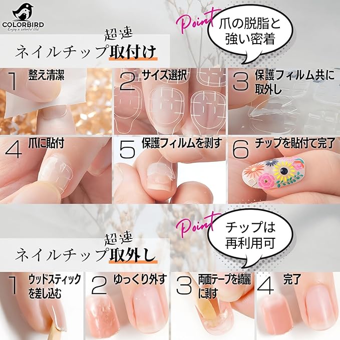 【長持ちで経済的】高品質なネイルチップは耐久性があり、繰り返し使用することが可能です。サロンでのネイル施術と比べてもコストパフォーマンスが高く、経済的に美しさを保つことができます。季節やシーンに合わせてネイルチップを変えれば、常に新鮮な気分で過ごせます。