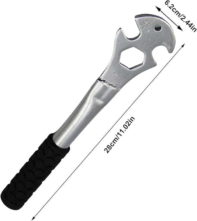 ✼強化された互換性: 当社のペダル レンチを使用すると、自転車のさまざまな要件を簡単に満たすことができます。9/16 インチ ペダル (メートル法 14.5 mm) を正確にドッキングでき、標準サイズの自転車ペダルにシームレスに取り付けるための 15 mm の開口部が完全に装備されています。