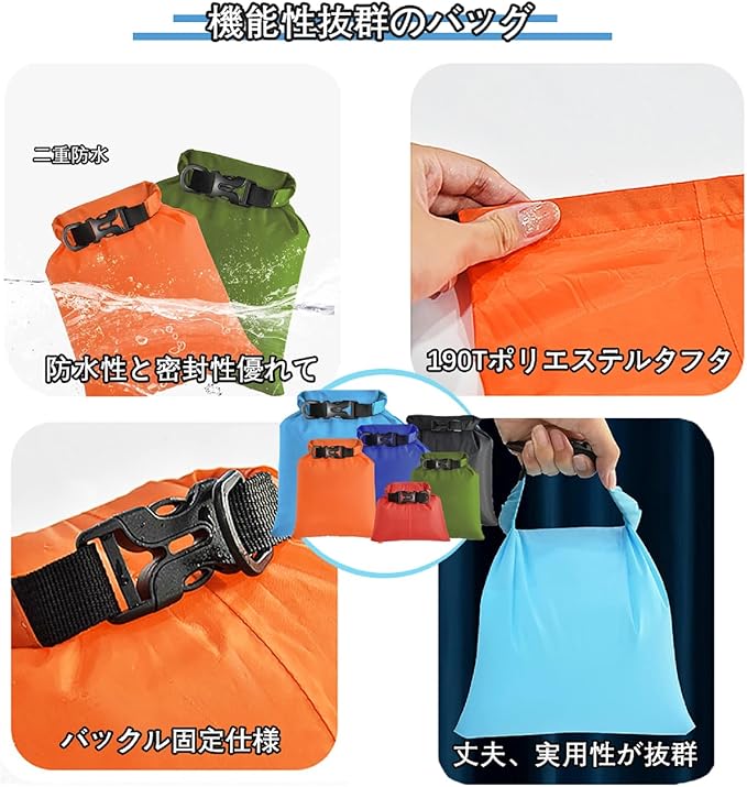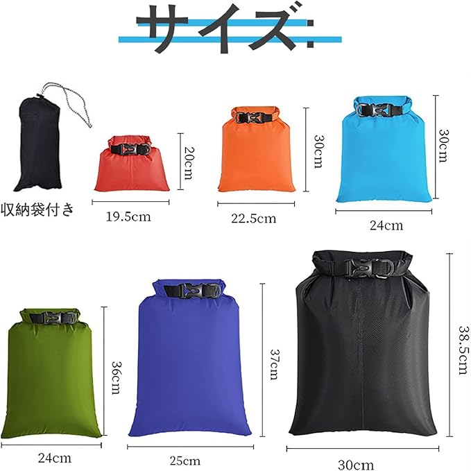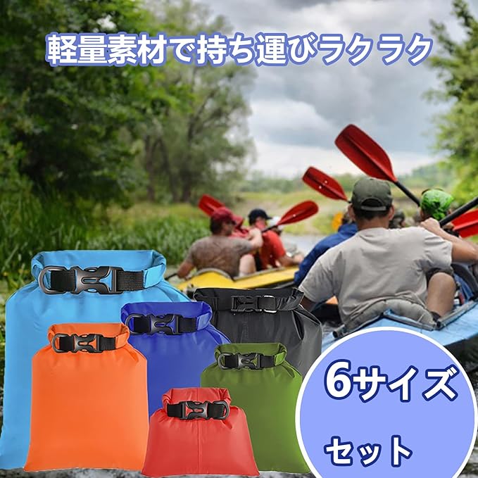 【サイズ】6つの異なるサイズを揃えたドライバッグです。1.5L+2.5L++3L+3.5L+5L+8L、さまざまなサイズの防水バッグでさまざまなニーズに対応できます。