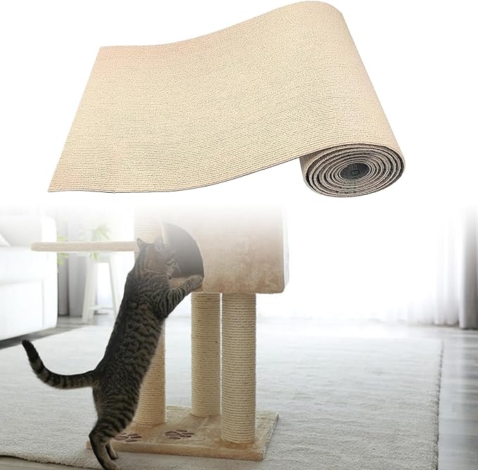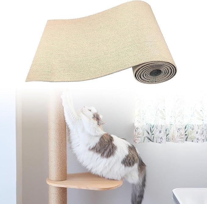 Perfk 自分で貼り付けられるトリミング可能な猫用スクラッチマット 滑り止め 40cmx 200cm 猫用ツリーシェルフカバー 猫用カーペット 猫用壁面家具ステップ用, カーキ | oioioichan