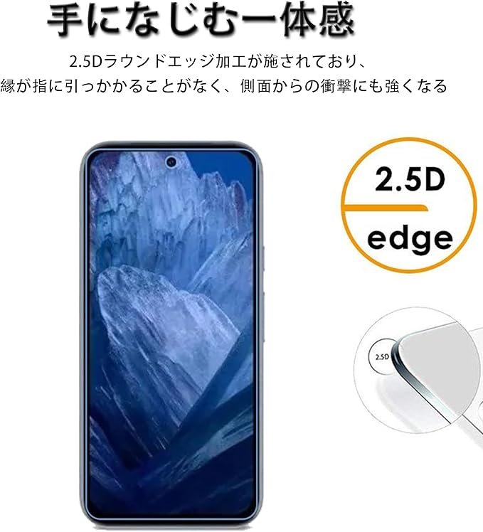 【貼り付けが簡単】 強化ガラスフィルムの背面にはナノ分子材料があり、貼り付ける際にはガラスフィルム上部を画面の各ポートに位置合わせ、エッジを持ってゆっくりと下ろすと、画面に自動的に吸着して気泡を排出します。すごく簡単な作業です。【注意】この機器は周辺部が曲面となったラウンド仕様のため、保護フィルムを端まで貼ることができません。そのため、表示部分よりも保護フィルムが小さくなっています。購入する場合、ご承知ください。"