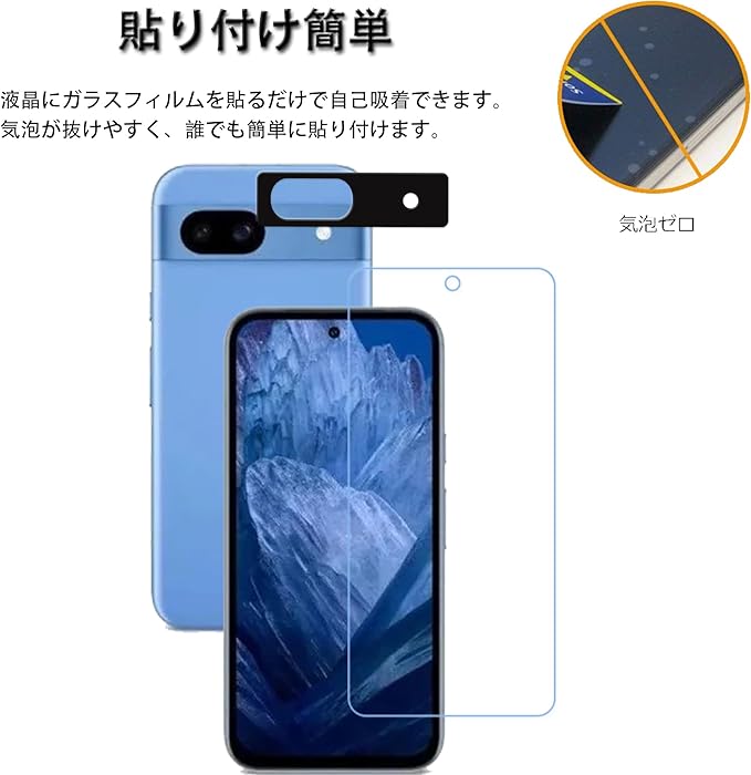 HKKAIS ブルーライトカット 目の疲れ軽減 93% Google Pixel 8a 用 (2枚) ガラスフィルム +(2枚)カメラフィルム 日本製硝子採用 強化 ガラス 液晶画面 保護フィルム | oioioichan