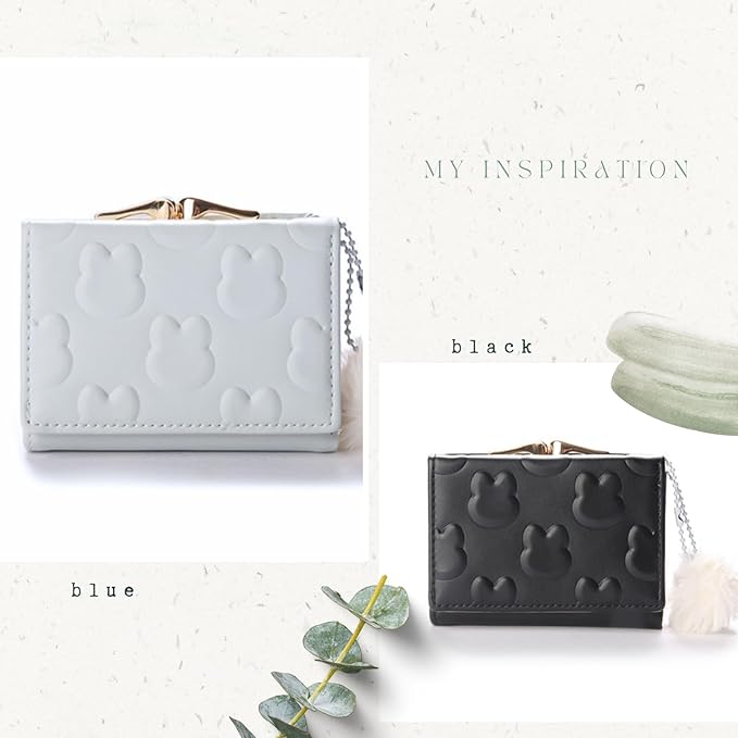 かわいいウサギの型押しされた、コンパクトな三つ折り財布です。片手の手のひらに収まる持ちやすい大きさで、お子様にも扱いやすいサイズです。