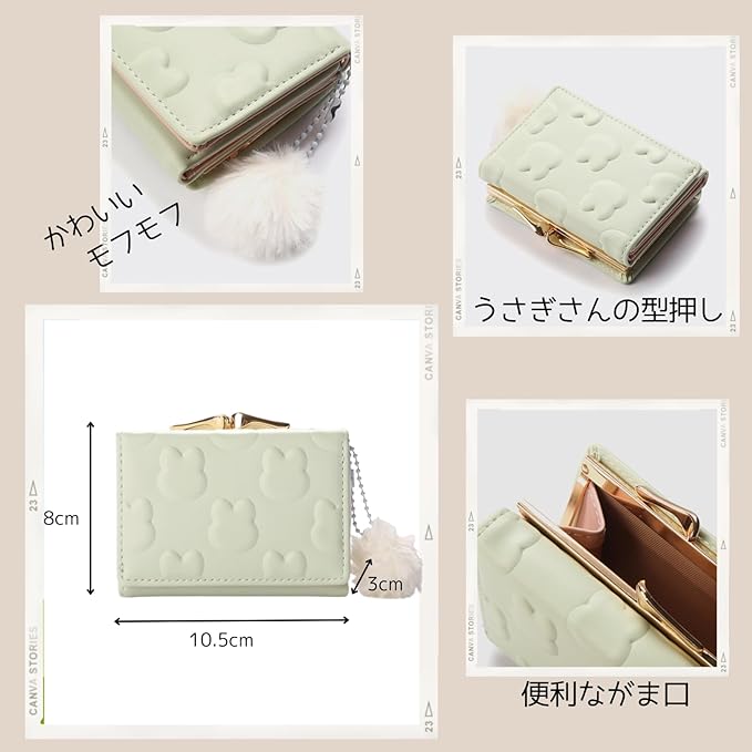 [ファルファデ] がま口 財布 3つ折り コンパクト 小銭入れ さいふ 女の子 ガールズ チャーム レディース 子供 プレゼント うさぎ 札入れ 三つ折り かわいい ウォレット ミニ サイフ お祝い カワイイ kawaii お洒落 サイフ 可愛い キッズ 中学生 高校生 ウサギ (グリーン) | oioioichan