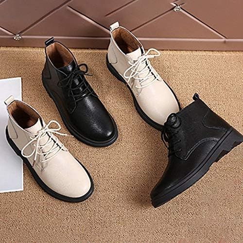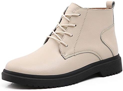 LINQIEN(リンキエン) 女装 靴 女性の秋冬足首オックスブーツ女性のレースアップラバーブーツ女性のプラットフォームブーツ用レディース本革シューズ (Color : Beige, Size : 5) | oioioichan