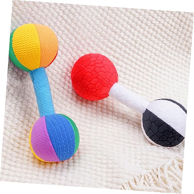 なダンベルおもちゃ: なデザインとカタカタ音が赤ちゃんの感覚を刺激し、感覚の発達を促進します。