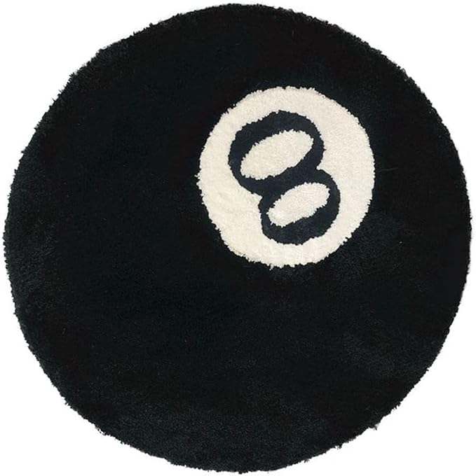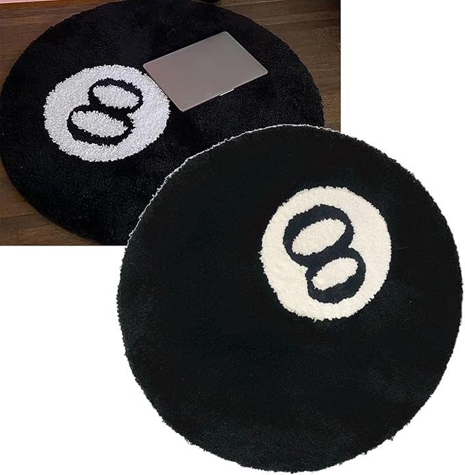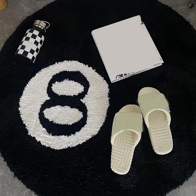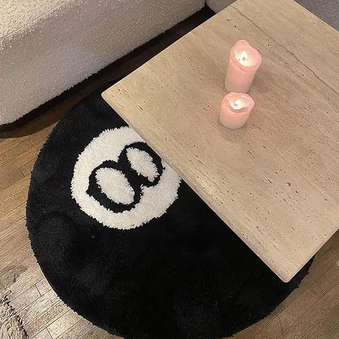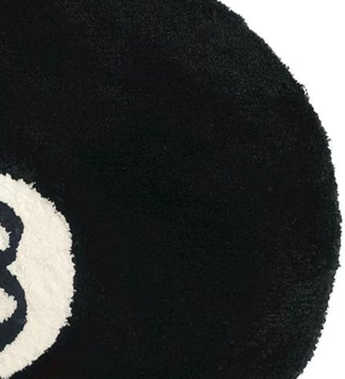 【ラグサイズ】当社の8ボールラウンドファーラグブラックラウンドラグは直径23.6インチです。寝室の装飾に最適なサイズです。スタイリッシュな柄がお部屋に特別な雰囲気を与えます。この黒いエイトボールはとてもユニークで立体的に見えます。全体的なデザインはシンプルで魅力的です。