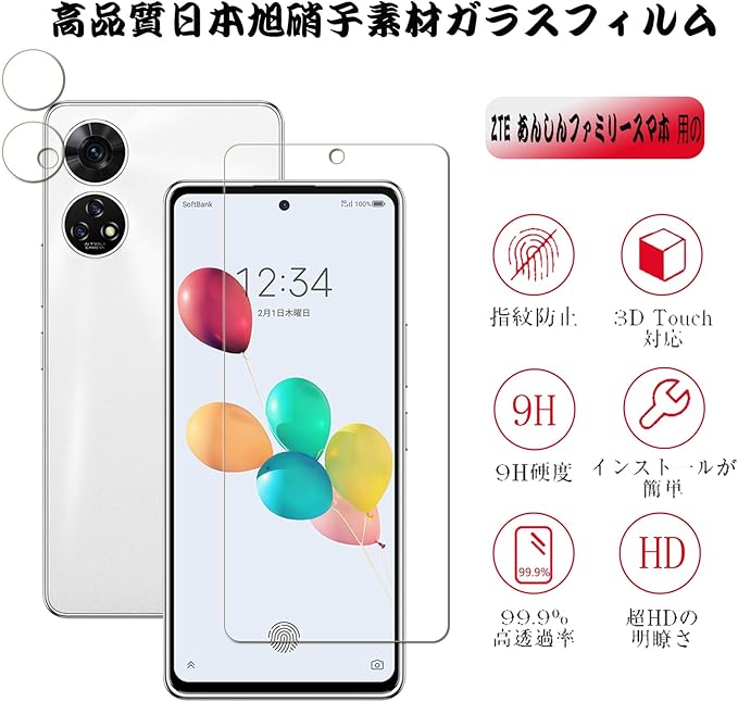 ⭕【対応機種】ZTE あんしんファミリースマホ 用の液晶画面保護ガラスフィルム