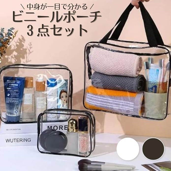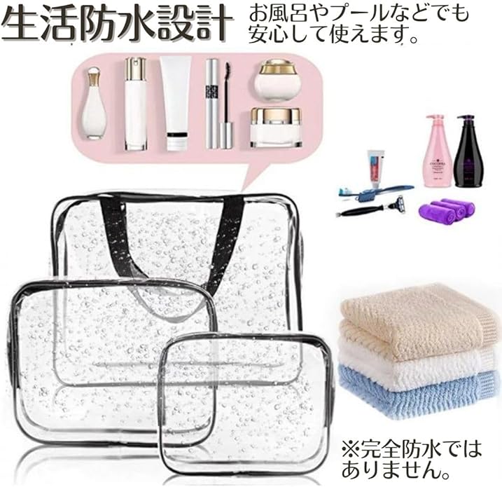 【旅行やお出かけに】便利な防水ポーチ3サイズのセットです。シンプルで使いやすいデザインなので、男女問わずお使いいただけます。温泉やスパ、スポーツジム、推し活、習い事など様々なシーンで活躍します。