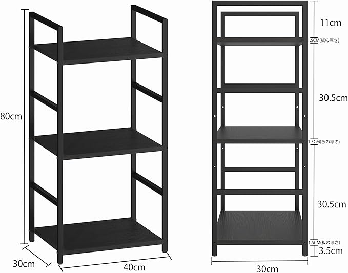 KIBOU KAI ラック オープンシェルフ 収納ラック 可動棚付き オープンラック レンジラック 本棚 リビング 棚 隙間収納 ディスプレイラック 収納ラック3段 40*30*80cm ブラック | oioioichan