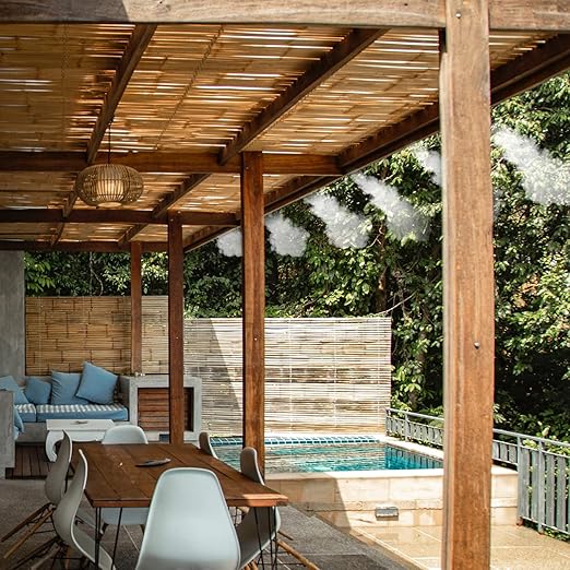 【冷房維持】ミストシステムは、ウォーターミストを発生させ、暑い夏の屋外環境からの熱を吸収し、涼しい屋外エリアを提供します。