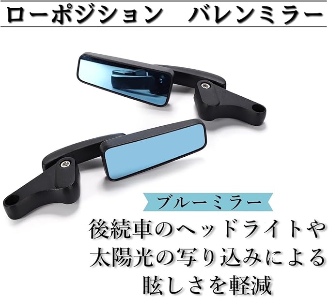 Kanoan バイク 用 バレン ミラー ローポジション ブルーミラー スクエア型 アルミ削り出 シグナス マジェスティ マグザム ステルス シグナスX ローフォルム カスタム バックミラー (左右セット) | oioioichan