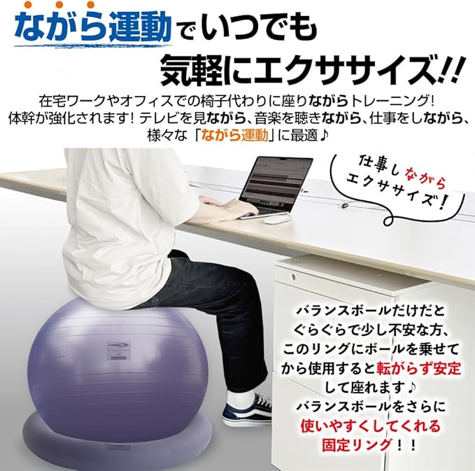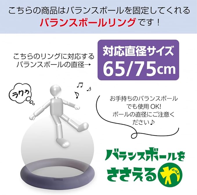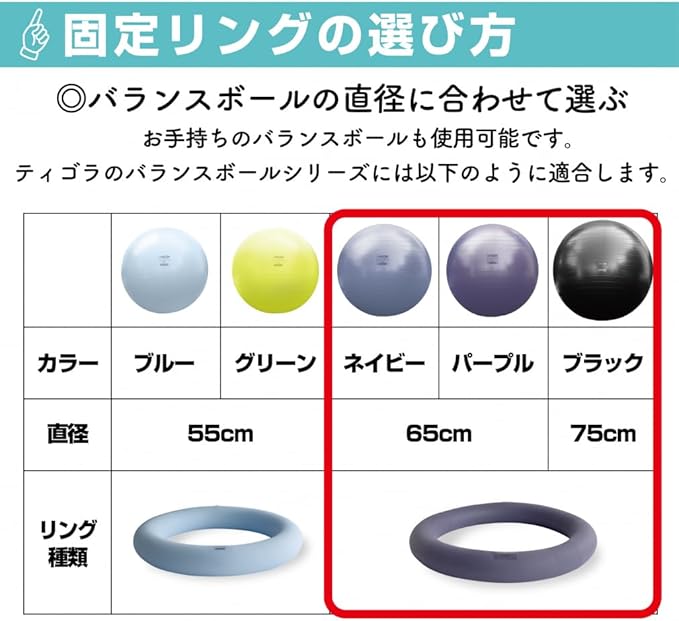 TIGORA(ティゴラ) バランストレーニング バランスボール ジムボール ヨガボール 65cm/75cm 固定リング ダイエット 骨盤 腹筋 PU