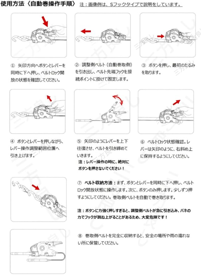 材質 ・ベルト:ポリエステル ・フック、ラチェット:スチール