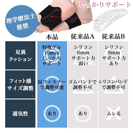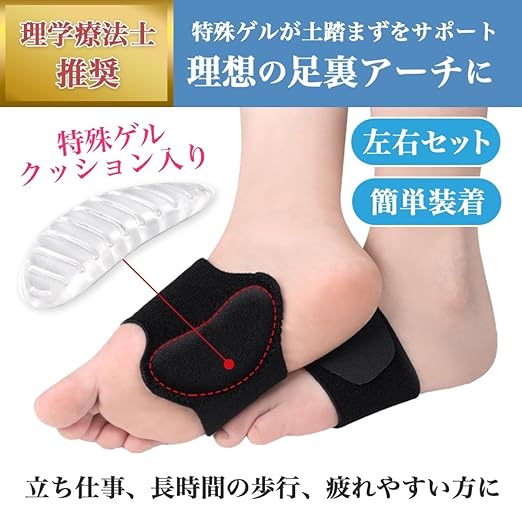【理学療法士推薦】特殊ゲル入り足裏サポーター。特殊ゲルクッション入りで土踏まずを確りサポート!理想の足裏アーチに!立ち仕事、長時間の歩行、疲れやすい方におすすめ!