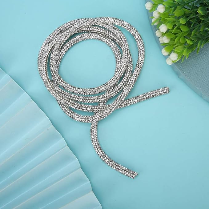 ラインストーンチューブロープリボンDIY縫製ウェディングドレス衣類装飾アクセサリー、スパンコールロープスパンコールラインストーンチューブロープ、衣類アップリケジュエリーアクセサリー工芸品リボンバッグ (白) | oioioichan