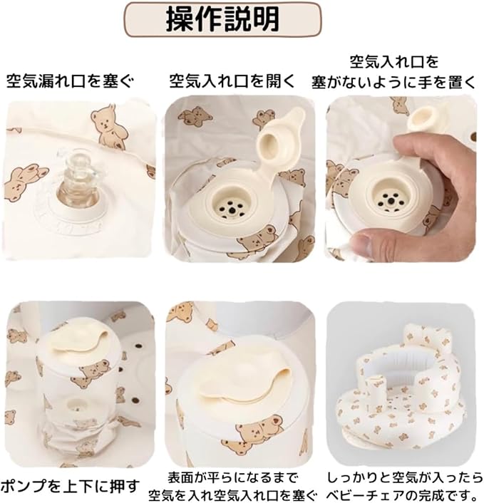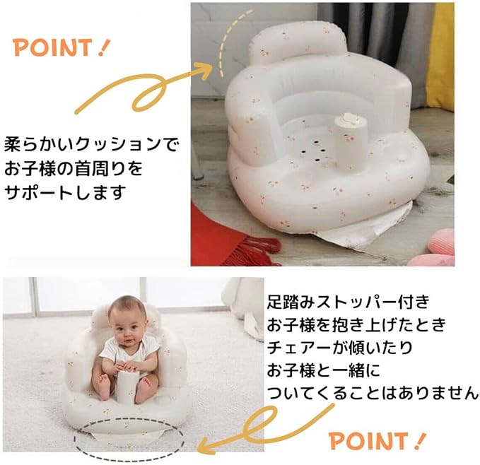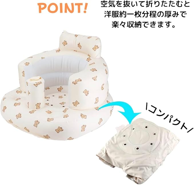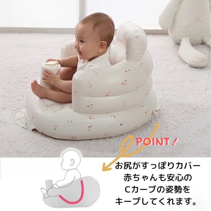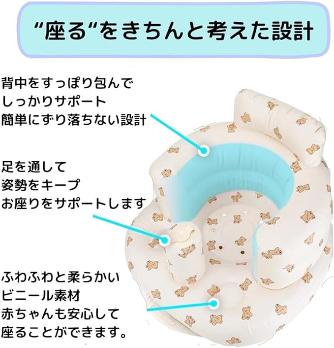 ベビー チェア お風呂 ふわふわ ふかふか お座り 赤ちゃん 椅子 7か月 男の子 女の子 エアー ビニール エアーポンプ 空気入れ 内蔵 コンパクト 折り畳み おりたたみ 持ち運び 防水 撥水 誕生日 ギフト 贈り物 (M) | oioioichan
