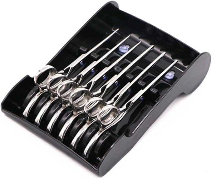 サロン用品はさみ棚 - このはさみ収納ケースは、最大6本のヘアカットはさみを保持できる6つのスロットを備えた非常に大容量です。